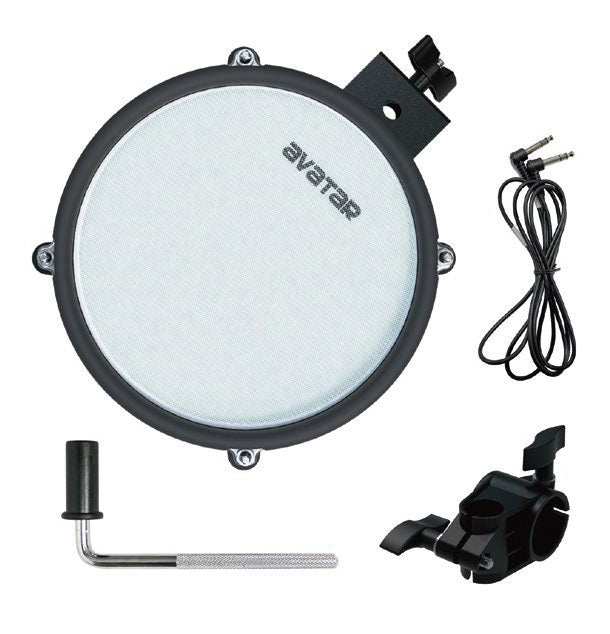 - Bundle includes: 8” mesh head drum pad, clamp, L-rod and 6.5ft USB to 1/4 male TRS cable